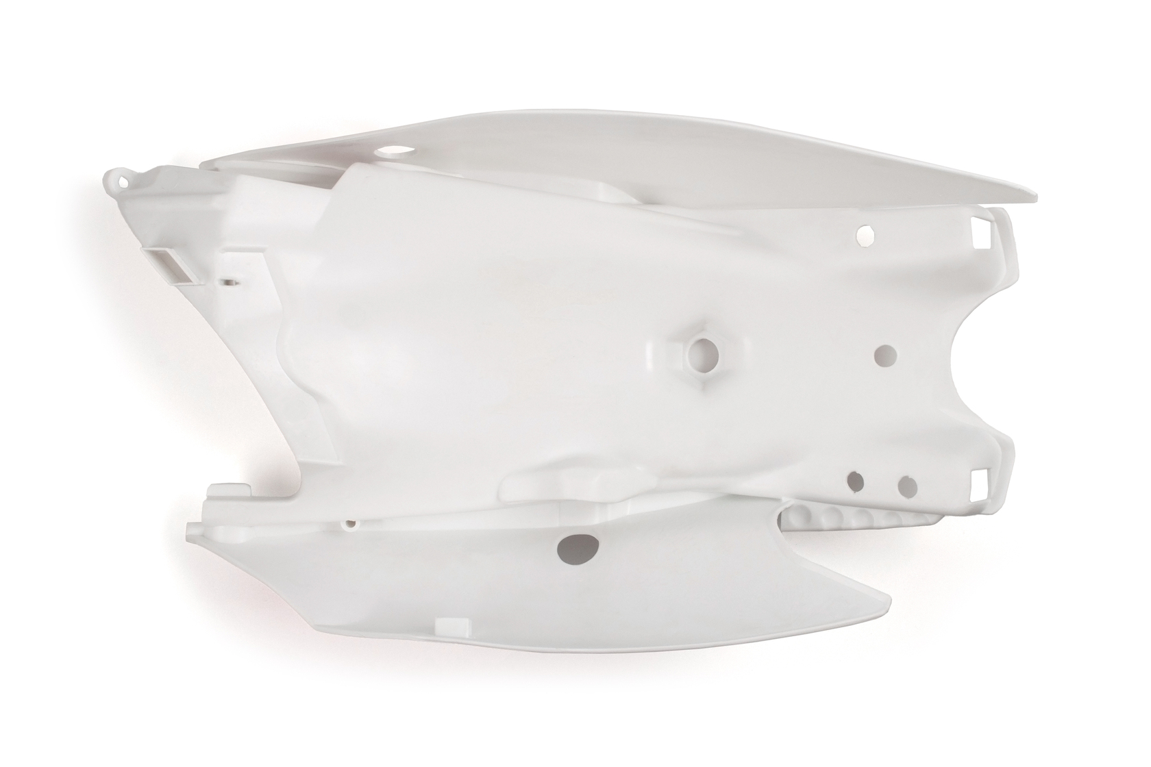 Комплект задней части хвоста (левая и правая сторона) пластика под стиль KTM SX85. Детали изготовлены из прочного и легкого ABS-пластика, идеально повторяют оригинальную форму, легко устанавливаются и обеспечивают надёжную защиту. Комплект выполнен в белом цвете и дополнен наклейками.