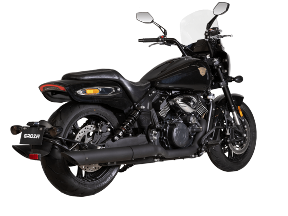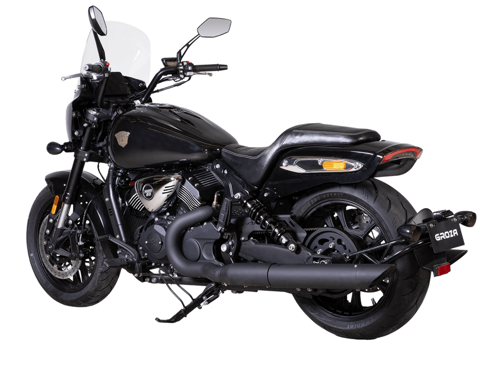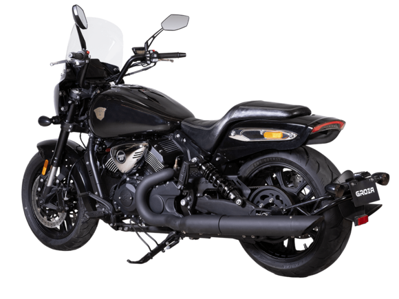 GROZA RL800 – шикарный круизёр, который подойдёт как для повседневной городской езды, так и для комфортного перемещения на длинные дистанции. Его дизайн исполнен в классическом стиле, соответствующем всем канонам данного типа мотоциклов.Двухцилиндровый V-образный двигатель объёмом 800 см3 мощностью 61 л.с. при высоких показателях динамики и отличном крутящем моменте способен разгонять аппарат до 160 км/ч. Инжекторный впрыск топлива с инжектором DELPHI увеличивает топливную экономичность, а также позволяет добиться высокой приёмистости и неприхотливости агрегата. Привод на ведущее колесо осуществляется ремнём знаменитой марки USA Gates. Жидкостная система охлаждения не допустит перегрева мотора даже при самом агрессивном вождении.RL800 имеет 6-ступенчатую механическую коробку передач с классической схемой “1-N-2-3-4-5-6”. На мотоцикл установлены литые алюминиевые диски диаметром 17 дюймов. Ширина передней покрышки – 140 мм, задней – 200 мм. С неровностями дороги эффективно справляются телескопическая вилка перевёрнутого типа спереди и маятник с двумя газонаполненными амортизаторами сзади. Подвеска имеет 7 ступеней регулировки, что обеспечивает лёгкую перестройку на различные режимы езды. Для всего класса круизёров такая опция – большая редкость. Эффективное и безопасное замедление с любых скоростей обеспечивают гидравлические дисковые тормоза спереди и сзади от компании NISSIN.Аппарат оснащён своеобразной и очень привлекательной по дизайну светодиодной оптикой, а также бортовым компьютером и ярким и информативным дисплеем.Мотоцикл сочетает в себе отличные технические характеристики, богатое оснащение, комфорт и надёжность, что позволяет вам ощутить настоящую свободу на любой дороге.