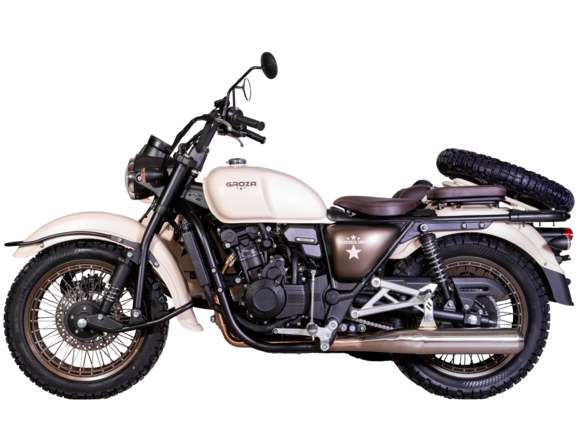 GROZA Defender 500 LC 4T EFI – легендарная модель, представляющая собой сайдкар в стиле ретро-милитари, и напоминающая культовый советский “Урал”. Байк оснащён изящными олдскульными фонарями и имеет покраску под фактуру некрашеного алюминия, как у истребителей 50-60 гг. Данная модификация является усовершенствованной моделью Defender 500 и оснащена гораздо более серьёзным мотором.Двухцилиндровый четырёхтактный двигатель объёмом 494 см3 выдаёт внушительные 54 л.с. Инжекторный впрыск топлива с блоком управления BOSCH увеличивает топливную экономичность, а также позволяет добиться высокой приёмистости и неприхотливости агрегата. Привод на ведущее колесо осуществляется цепью. Жидкостная система охлаждения не допустит перегрева мотора даже при самом агрессивном вождении.Аппарат имеет 5-ступенчатую механическую коробку передач с реверсом, что существенно облегчает маневрирование в ограниченном пространстве. На мотоцикл установлены классические спицованные колёса диаметром 18 дюймов, обутые в универсальную резину с протектором “ёлочка”, который отлично справляется с ездой по бездорожью. Передняя подвеска редкого типа – маятник с двумя амортизаторами. Сзади также установлено два пружинно-гидравлических амортизатора. Эффективное и безопасное замедление с любых скоростей обеспечивают гидравлические дисковые тормоза спереди и сзади с металлокерамическими колодками.В задней части коляски расположен вместительный багажный отсек с двумя газлифтами, а над ним закреплено запасное колесо, которое можно установить взамен любого из трёх колёс мотоцикла – незаменимая вещь для продолжительных путешествий. Также на коляске установлен передний багажник и два боковых кофра.Мотоцикл сочетает в себе отличные технические характеристики, комфорт и надёжность, что позволяет вам ощутить настоящую свободу на любой дороге.