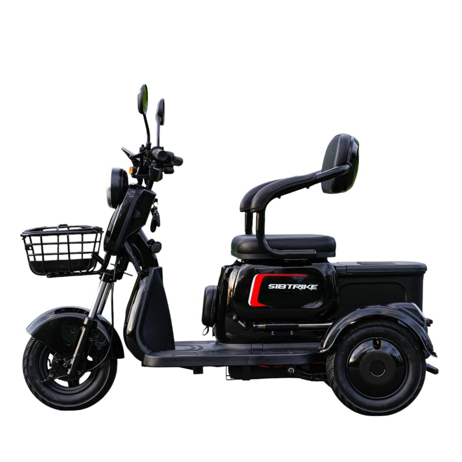 Пассажирский электрический трицикл-трансформер SIBTRIKE 2000WДанная модель рассчитана на взрослых райдеров, у которых есть дети. Поистине универсальный транспорт! Большое удобное сидение создано для продолжительных поездок. Есть откидное детское сидение и две корзинки - спереди и сзади. Аппарат подойдёт для поездок по территориям Российских санаториев, парков и набережных.Что же отличает SIBTRIKE 2000W от конкурентов?Универсальная конструкция для выполнения широкого спектра задач;Откидное детское сидение;Возможность ездить втроём – 2 взрослых места + детское сидение;Аккумулятор Li-ion 60V 21A с балансиром, запас хода до 45 км;Удобен для парков и коттеджных посёлков;Редукторный мотор с дифференциалом, что не даёт опрокидываться трициклу;Отличная тяга в гору;LED оптика;Колёса 10 дюймов.Электромотоцикл SIBTRIKE 2000W – отличный помощник для решения широкого спектра задач в санаториях, на территориях отелей, парков и набережных.Замена масла: 0,5 литра трансмиссионное GL-4 80W90Первая замена 350км, вторая 1000км, далее каждые 1500км