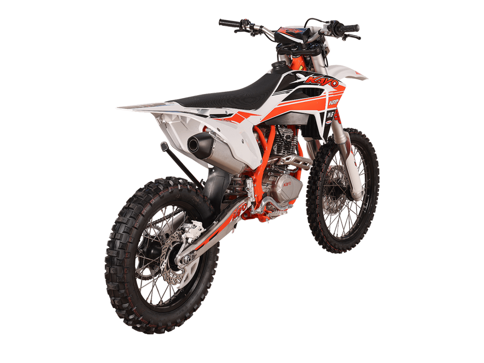 KAYO K6-A 300 MX – новинка в линейке эндуро мотоциклов. Это первый полноразмерный эндуро семейства KAYO с воздушным охлаждением. Создан для тех, кто ищет неприхотливый и выносливый мотоцикл для экстремальных условий офф-роуда и горных трасс.Модель оснащена одноцилиндровым 4-тактным двигателем 175FMN CB300RL с 4 клапанами и балансирным валом объёмом 271 см³ и мощностью 27 л.с. Запуск осуществляется с помощью электростартера. Карбюратор NIBBI PWK34 отвечает за стабильную работу даже при высоких нагрузках. Чтобы контролировать время работы техники, приборная панель оснащена счётчиком моточасов. Механическая коробка передач имеет 5 ступеней.Ходовая часть включает переднюю подвеску KAYO Racing Performance (KRP), произведённую компанией KKE специально для KAYO, с ходом 940 мм и задний моноамортизатор с ходом 480 мм. Оба компонента оснащены полным набором регулировок. Это позволяет настроить мотоцикл под конкретные условия и стиль вождения, чтобы езда по неровностям была более плавной и устойчивой.Классические спицованные колёса с алюминиевыми дисками и шины YUANXING диаметром 18 и 21 дюйм создают крепкий зацеп с поверхностью. Передние и задние дисковые тормоза гарантируют безопасность и контроль над скоростью. Пластиковая защита тормозных дисков повышает долговечность системы.Благодаря передней LED-фаре управление становится возможным даже в тёмное время суток.KAYO K6-A 300 MX – выбор тех, кому нужен производительный, лёгкий в обслуживании и надёжный мотоцикл для активного отдыха и спорта. Подойдёт и новичкам, и опытным гонщикам.Комплектация и внешний вид мотоцикла могут отличаться в зависимости от поставки. Изображение на сайте не гарантирует наличие тех или иных опций. Уточняйте информацию при оформлении заказа.
