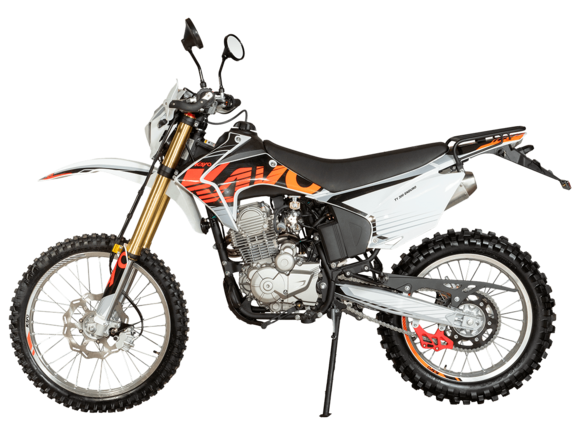 Мотоцикл KAYO T1 300 Enduro 21/18 2025 ПТС – надёжный и производительный эндуро, готовый встретить вызовы внедорожных трасс.Оснащён 4-тактным двигателем объёмом 271 см³ с верхним распредвалом и воздушным типом охлаждения. Максимальная мощность в 24 л.с. развивает при 8500 об/мин, а максимальный крутящий момент 22 Нм при 6500 об/мин. За подачу топлива отвечает карбюратор PD30. Он обеспечивает плавность хода, топливную экономность и бесперебойную работу двигателя даже в самых жёстких условиях. Соотношение диаметра цилиндра и хода поршня 75,0х61,4. Степень сжатия 9,29:1. Запуск двигателя осуществляется с помощью электростартера или кикстартера. Тип зажигания CDI. Снизу установлена пластиковая защита двигателя.Механическая коробка передач имеет 5 ступеней. Привод цепной. Объём топливного бака 9 литров.На мотоцикл установлены спицованные колёса с алюминиевыми ободами, алюминиевыми ступицами и буксаторами. Обуты во внедорожные покрышки YUANXING 80/100-21 и 110/100-18.Длина подвески спереди 880 мм, длина задней подвески 380 мм. Задняя подвеска оснащена прогрессией. Траверсы выполнены из литого алюминия, а прогрессия – из стали. За торможение отвечают дисковые гидравлические тормоза.Прочная рама и маятник выполнены из стали. Мотоцикл имеет ПТС и оснащён всем необходимым для поездок по дорогам общего пользования: диодная светотехника (яркая фара, поворотники, стоп-сигнал), звуковой сигнал, цифровая приборная панель, зеркала заднего вида.Для управления установлен руль переменного сечения 28 мм Fatbar со стандартными рычагами сцепления и тормоза, на который установлена алюминиевая защита рычагов с широкими ветрозащитными щитками. Имеется платформа для перевозки грузов и дополнительные подножки для поездок с пассажиром.Габариты мотоцикла 2100х810х1180 мм, вес 119 кг. Клиренс 340 мм, колёсная база 1420 мм, высота по седлу 900 мм.