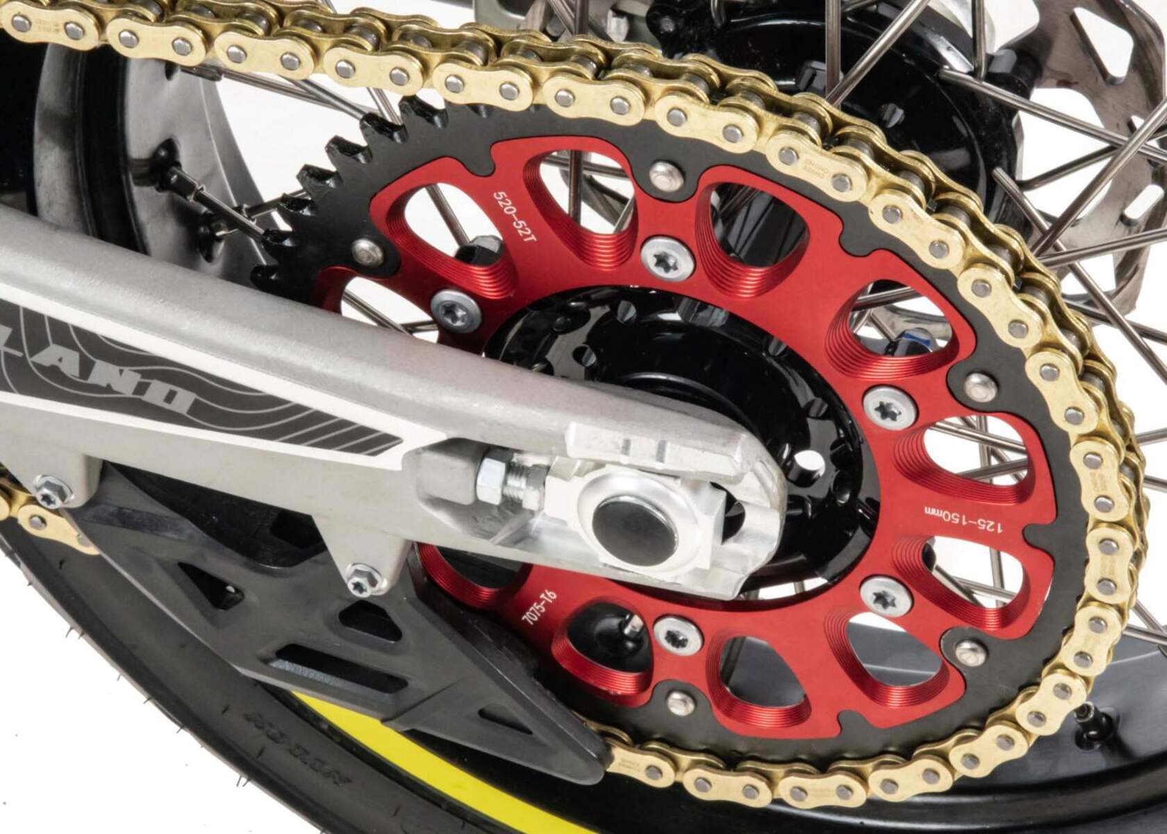 Мотоцикл MOTOLAND 500 XT500 ST 17/17 (мотард) это полноценный «заряженный» кроссовый мотоцикл, но на шоссейной резине. Имеет хорошую проходимость и тяговую мощность за счет установленного 4х тактного двигателя LONCIN 267 MR с рабочим объёмом 500 см³, мощностью 48 л.с. и карбюратором Nibbi 38. Идеален для езды по дорогам общественного пользования, т. к. его сликовые 17 дюймовые шины (110-70) и (140-70) просто созданы для езды по среднему и твердому грунту.Мотоцикл относится к топовой линейке мотоциклов MOTOLAND. Передняя подвеска FASTACE - картриджная(закрытого типа), обеспечивает лучшее качество демпфирования (лучше отрабатывает препятствия) по сравнению с обычными вилками, с зади так же установлен амортизатор FASTACE, с увеличенным выносным бачком, позволяющий настраивать подвеску под разные условия эксплуатации. Ступицы из фрезерованного алюминия обладают высоким сопротивлением к нагрузкам. Большое количество аллюминиевых деталей позволило значительно снизить его вес, который составляет всего 125 кг.