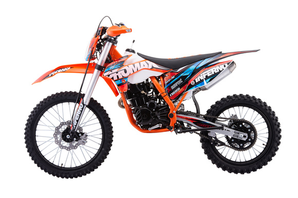 Главная ... Эндуро PROMAX Кроссовый мотоцикл PROMAX INFERNO 380 (4 valves, 6 gears) оранжево - черный-синий