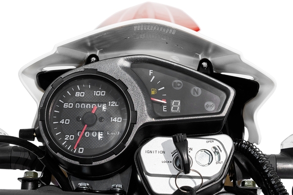Regulmoto SK 200GY-5 – мотоцикл двойного назначения, созданный для эксплуатации как на дорогах общего пользования, так и на легком бездорожье. Топовая модель линейки лайт-эндуро мототехники известного китайского производителя Senke отличается высокой надежностью повседневной эксплуатации, отсутствием сложностей в сервисном обслуживании, простотой и легкостью управления.В надежной раме с защитными дугами Regulmoto SK 200GY-5 установлен 4-тактный одноцилиндровый двигатель с рабочим объемов в 20 см3, демонстрирующий максимальную мощность в 13.6 л.с. Мотор с воздушным охлаждением, в котором можно без труда признать реплику двигателя известного японского производителя, оснащается балансировочным валом, что позволяет избавиться от излишней вибрации.Подвеска мотоцикла на колесах 21/18 дюймов со стальными ободьями представлена телескопической вилкой-перевертышем спереди, перья которой закрыты защитой, и стальным маятником с моноамортизатором сзади. Тормоза у мотоцикла дисковые, спереди установлен 4-поршневой суппорт, сзади – 2-поршневой.Оснащение Regulmoto SK 200GY-5 соответствует возлагаемым на мотоцикл эксплуатационным задачам: на байке вполне комфортно передвигаться по дорогам и легкому бездорожью, чему способствуют достаточно большой ход амортизаторов, защита цепи, пластиковая защита рук. Среди установленного оборудования присутствуют: аналоговая приборная панель, замок зажигания с защитой от попадания песка и пыли, полный комплект светового оборудования с дополнительными светодиодными поворотниками, встроенными в боковые обтекатели, зеркала заднего вида, стояночная и центральная подножки.Данная модель мотоцикла присутствует на отечественном рынке мототехники уже достаточно длительное время, за которое мотоцикл зарекомендовал себя легким в эксплуатации и неприхотливым в обслуживании аппаратом. О высокой надежности мотоцикла говорят солидный километраж пробегов при отсутствии серьезных неисправностей и позитивные отзывы обладателей Regulmoto SK 200GY-5.У нас Вы можете купить этот мотоцикл с бесплатной доставкой по РФ и гарантией до года. Также его можно приобрести в рассрочку или в кредит.