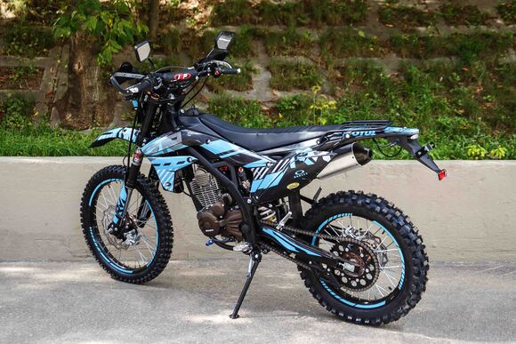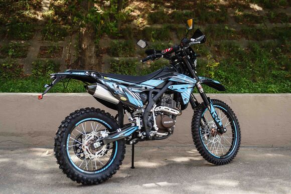 Regulmoto ZR 250 Enduro 2021г.«Regulmoto» представляет вниманию поклонников фри-райда мотоцикл Regulmoto ZR 250 Enduro. Стильный и доступный байк многоцелевого назначения найдет применение в качестве надежного аппарата для покорения бездорожья, а также может использоваться для решения широкого круга утилитарных задач и передвижения по дорогам общего пользования.В основе конструкции Regulmoto ZR 250 Enduro – мощная стальная рама, поставленная на колеса 21/18, которые наилучшим образом подготовлены к офф-роаду. Ободья и ступицы колес изготовлены из алюминия, также установлены усиленные спицы и буксаторы, надежно фиксирующие покрышки на ободе. Подвеску эндуро-байка представляют длинноходная телескопическая вилка-«перевертыш» спереди и стальной маятник с прогрессией и моноамортизатор с компенсационным резервуаром сзади. Работу амортизаторов при необходимости можно настроить при помощи регулировки сжатия/отбоя.Силовая установка мотоцикла представлена одноцилиндровым 4-тактным двигателем Zongshen SZ172FMM-3A с воздушным охлаждением рабочим объемом в 249,9 см3; за подготовку топливной смеси отвечает карбюратор Nibbi PE28. Технический потенциал надежного и производительного двигателя позволяет демонстрировать 21 лошадиную силу максимальной мощности и 18 Hm максимального крутящего момента.Regulmoto ZR 250 Enduro также привлекает внимание отличными внешними данными: мотоцикл комплектуется крепким и гибким пластиком с ярким дизайном, выполненным в узнаваемой стилистике популярной модели известного производителя. Подбор качественных компонентов также заслуживает внимания: