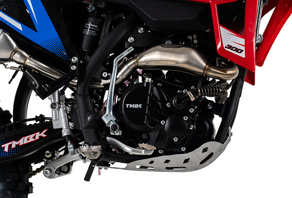 TMBK Kinetic 300 — драйв с первого километраСтоит вам повернуть ручку газа, как TMBK Kinetic 300 моментально рванет вперед, подобно сильному потоку энергии. Его мощь гармонично сочетается с великолепной маневренностью. Kinetic 300 — это билет в мир скорости, свободы и бесконечного драйва.Мощь и стремительностьСердце TMBK Kinetic 300 — надежный 4-тактный 300-кубовый двигатель ZS174MN-5 мощностью 31 л.с., оснащенный балансировочным валом. Благодаря небольшому весу в 118 кг, мотоцикл разгоняется до 140 км/ч. 174-й мотор с водяным охлаждением справится с любыми нагрузками и не перегреется даже в самый жаркий день, когда двигатель работает на максимальных оборотах. Заводская защита картера надежно оберегает «брюхо» Kinetic от ударов камней и других сюрпризов бездорожья. Высокий клиренс в 320 мм защитит двигатель от попадания влаги при форсировании бродов.Настройте под себяКлюч к максимальному комфорту и полному контролю — настраиваемая подвеска KYB-Tech. Адаптируйте жесткость и отбой амортизаторов для своих задач, будь то расслабленная прогулка по лесным тропам или агрессивная тренировка.Бесконечный разгон и свободаОстановка? Это не про него. 11-литровый бензобак обеспечивает запас топлива для длительных тренировок и прогулок по бездорожью. Этот мотоцикл жаждет скорости, динамики и непрерывного движения.TMBK Kinetic 300 создан для тех, кто хочет испытать настоящий драйв, покорить сложнейшие трассы и насладиться каждым километром.
