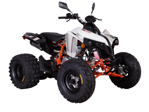Квадрицикл KAYO A300 – топовый представитель линейки ATV для внедорожного экстрима. Обладает высокими характеристиками, позволяющими справляться с самыми сложными маршрутами. Оснащён ПТС для поездок по дорогам общего пользования.Квадрицикл оснащён одноцилиндровым 4-тактным двигателем LONCIN LX178MN с 4 клапанами и жидкостным охлаждением. Имеет объём 292 см³ и способен развивать мощность до 29 л.с. За подачу топлива отвечает инжектор. Обеспечивает бесперебойную работу в самых жёстких условиях, лёгок в обслуживании и неприхотлив к качеству топлива. Механическая коробка передач с 5 ступенями и реверсом имеет схему R-N-1-2-3-4-5. Объём топливного бака 5,5 литра.На KAYO A300 задействована развитая многорычажная подвеска. Удлинённые рычаги позволили изменить угол наклона амортизаторов и увеличить ширину колеи. Это повысило устойчивость и управляемость квадрицикла. Для адаптации под конкретные задачи подвеску можно настраивать. Длина переднего амортизатора 375 мм, длина заднего амортизатора 380 мм.Рама выполнена из хроммолибденового сплава. Колёса имеют диаметр 10 и 9 дюймов. Обуты во внедорожные покрышки с агрессивным протектором CST Ambush. За торможение отвечает дисковая гидравлическая система. Передние тормозные роторы установлены внутри колёсных дисков, что повысило защиту и надёжность системы в условиях эксплуатации на бездорожье.Квадрицикл оснащён полным комплектом светотехники для поездок в тёмное время суток и по дорогам общего пользования.Габариты квадрицикла 1660х1155х1030 мм, вес 170 кг.