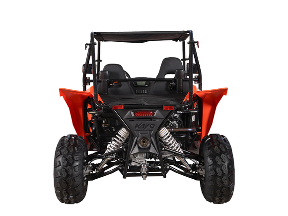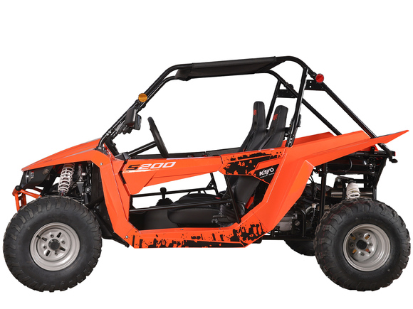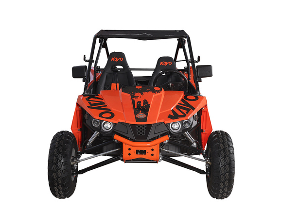 Квадрицикл KAYO S200 (2024 г.) (ПТС) – багги, который сочетает в себе мощность, манёвренность и прочность, что позволяет уверенно ездить по пересечённой местности. Своей способностью справляться с различными препятствиями и условиями, KAYO S200 открывает новые горизонты, делая каждую поездку незабываемой.Багги оснащён одноцилиндровым 4-тактным двигателем LONCIN LX163FML объёмом 196 см³ с электростартером и воздушно-масляным охлаждением. Цилиндр располагается вертикально. Степень сжатия 9.3:1. Двигатель развивает мощность 15 л.с. на 7000 об/мин, а максимальный крутящий момент в 15 Н·м достигается на 5500 об/мин. Передача крутящего момента на задние колёса осуществляется при помощи карданного привода. Максимальная скорость 65 км/ч.За подачу топлива отвечает карбюратор PZ30. Он обеспечивает бесперебойную работу в самых жёстких условиях, прост в обслуживании и неприхотлив к качеству топлива. Объёма бака в 15 литров хватает для длительных поездок. Трансмиссия – клиноременный вариатор с режимами F-N-R.Подвеска собственной разработки KAYO представлена в виде независимых нерегулируемых амортизаторов. Спереди используется подвеска на А-образных рычагах длиной 420 мм с ходом 130 мм. Задние амортизаторы имеет длину 480 мм и ход подвески 150 мм. Такая конструкция позволяет KAYO S200 адаптироваться к неровностям поверхности и обеспечивает плавное и комфортное вождение. Минимальный клиренс в 230 мм позволяет без труда преодолевать препятствия на различных ландшафтах. И даже склоны до 25˚ не станут для багги помехой.На квадрицикл установлены колёса диаметром 10 дюймов, с размерами шин спереди AT22*7.0-10 и сзади AT22*10-10. Покрышки выполнены из высококачественного компаунда и имеют агрессивный рисунок протектора. Они отлично держат дорогу на разных типах покрытий. Гидравлические дисковые тормоза обеспечивают эффективное и безопасное торможение. Ручной тормоз осуществляет фиксацию задней оси.Среди конструктивных особенностей необходимо отметить мощную раму оригинальной разработки, которая обеспечивает прочность и долговечность конструкции. Облицовка багги выполнена из прочного пластика, а крыша из износостойкого мягкого материала. Также имеется электронная приборная панель с информативным ЖК-экраном, обрезиненные рулевое колесо и рычаг ручного тормоза, которые позволят райдеру мгновенно реагировать на изменения дорожных условий и маневрировать в любых ситуациях. KAYO S200 идеально подходит для поездок за город в поисках приключений или для семейного отдыха.За безопасность пассажиров отвечают ремни безопасности с 4-точечной системой, которые застёгиваются посередине спереди. Дополнительно имеется ручка для пассажира, чтобы держаться при сильном наклоне или тряске.Багги имеет паспорт транспортного средства (ПТС) и всё необходимое снаряжение для использования на дорогах общего пользования: фары, сигнальные огни, зеркала заднего вида и звуковой сигнал.Габариты 2517x1487x1446 мм. Высота по седлу 410 мм. Вес 320 кг.