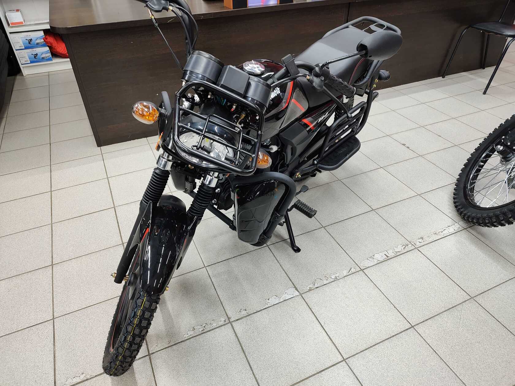 Электрика Светодиодная фара, электростартер, замок зажигания, АКБ(12В, 4Ач), полный комплект светотехники, аналоговая приборная панель.