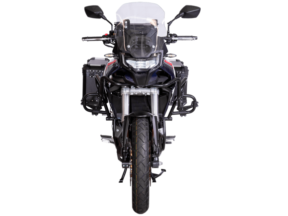 Мотоцикл CYCLONE RX600 ADV 2025 ПТС – туристический эндуро для покорения самых непростых и протяжённых маршрутов.Силовая установка представлена 2-цилиндровым 4-тактным двигателем DOHC объёмом 550 см³ с 4 клапанами на каждом цилиндре. Мощность в 59,9 л.с. достигается при 8500 об/мин, а максимальный крутящий момент 55 Н·м при 6500 об/мин. Соотношение диаметра цилиндра и хода поршня 72х67,6 мм. Степень сжатия 11:1. Жидкостная система охлаждения не допустит перегрева двигателя даже на самых непростых маршрутах. Механическая коробка передач имеет 6 ступеней.Максимальная скорость 170 км/ч.Объём топливного бака 18 литров.На мотоцикл установлены спицованные алюминиевые колёса диаметром 19 дюймов спереди и 17 дюймов сзади. В качестве передней подвески используется телескопическая вилка перевёрнутого типа с ходом 130 мм, а задней – маятник с моноамортизатором с ходом 55 мм. Оба компонента подвески регулируются. На переднее колесо установлены 2 тормозных диска диаметром 305 мм с 4-поршневыми суппортами, а сзади используется тормозной диск 258 мм с однопоршневым суппортом с плавающей скобой. Дополнительно на оба колеса установлена настраиваемая ABS-система.Габариты мотоцикла 2160х870х1399 мм, вес 219 кг. Клиренс 175 мм, колёсная база 1410 мм, высота по седлу 810 мм.Оснащён противобуксовочной системой и датчиками давления в шинах. Для освещения используется диодная светотехника. Многофункциональная приборная панель имеет TFT-дисплей. На руле установлена подсветка пультов. Для зарядки устройств имеется USB-порт. Также есть защитные дуги, защита двигателя, 3 кофра и центральная подставка.