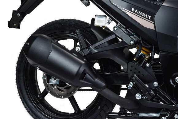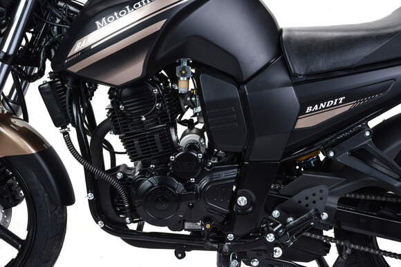 Мотоцикл Motoland BANDIT 300 является классическим представителем семейства дорожным мотоциклов. При этом он обладает всеми чертами мощного сити-байка необходимыми для комфортного передвижения как по городу, так и по шоссе.Стальная рама, объем топливного бака 18 литров. Расход топлива 3 л. на 100кмПодвеска передняя: Телескопическая. Подвеска задняя: моноамортизатор.Колесные диски алюминиевые, размер колес — 17 дюймов. Размер резины (перед / зад): 100/80/17 140/60/17Зеркала, крепление под номер, подножки второго пассажира. Тормоза дисковые. Мягкое сиденье, обшивка из кож-замаФара, электростартер, замок зажигания, АКБ, поворотники, стоп-сигнал, электронная приборная панель.Двигатель 175FMM бензиновый с воздушно-масляным охлаждением, его рабочий объем - 300 кубов, мощность 25 л.с. Коробка передач - механическая, 5-ступенчатая, знакомая всем водителям по автошколе, а потому разобраться не составит труда.