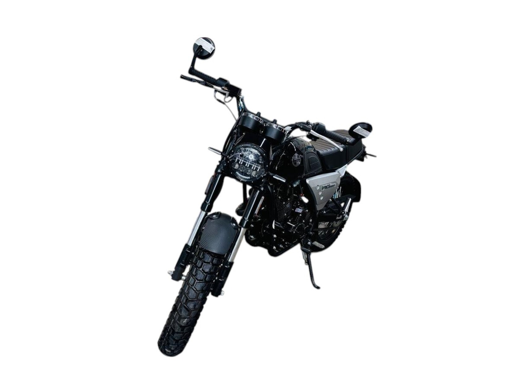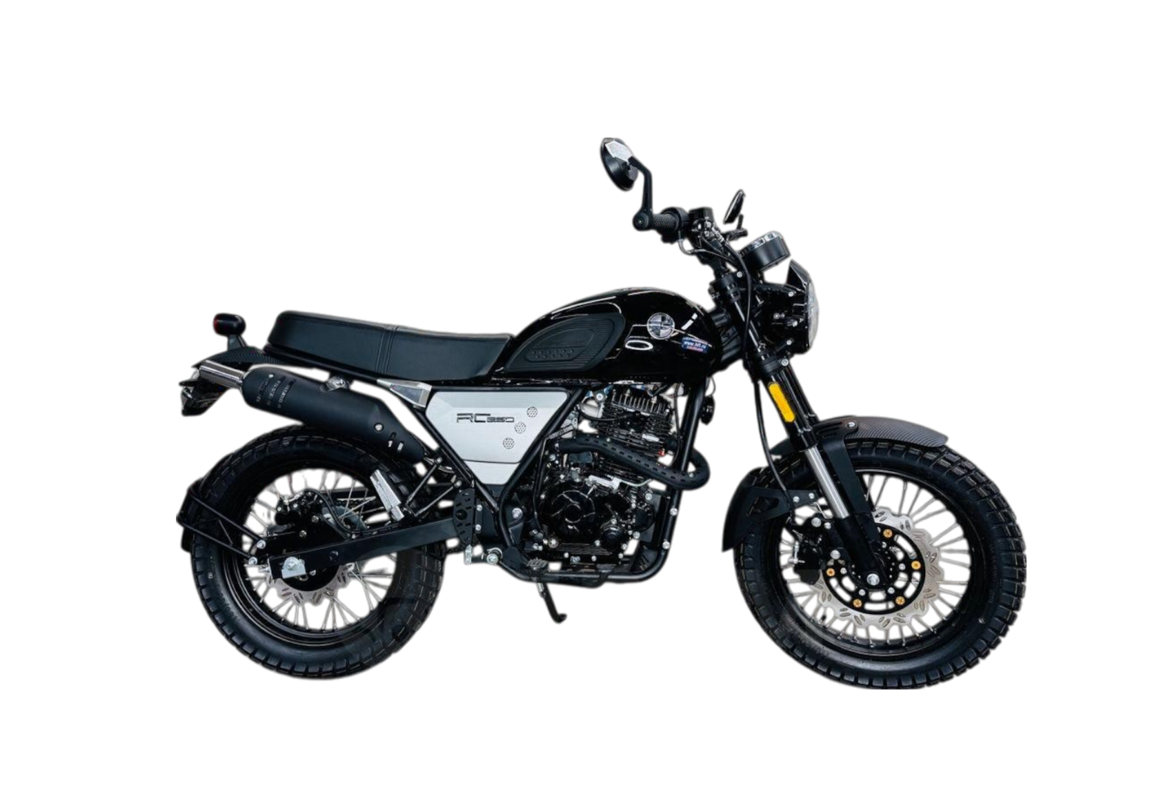 Racer RC300-GY8H Triumph 300 — это компактный и легкий мотоцикл с продуманными техническими характеристиками, ориентированный на городскую и пригородную эксплуатацию. Его габариты составляют 1980х835х1350 мм, что делает его маневренным на дороге, а колесная база 1330 мм обеспечивает устойчивость при движении. Вес мотоцикла — 110 кг, что позволяет легко управлять им, даже неопытным водителям.Сердцем модели является 4-тактный двигатель объемом 297 см³ с балансировочным валом, который выдает мощность 25 л.с. при 8500 об/мин. Двигатель охлаждается воздушной системой, что делает его простым в обслуживании и надежным в эксплуатации. За подачу топлива отвечает карбюратор PZ32. Мотоцикл оснащен пятиступенчатой коробкой передач с классической схемой переключения (1-N-2-3-4-5), а запуск возможен как с электростартера, так и с кик-стартера.Топливный бак объемом 14 литров обеспечивает запас хода на длительные поездки, при этом расход топлива составляет всего 2,8 л на 100 км, что делает его экономичным вариантом. Модель способна развивать скорость более 100 км/ч, а максимальная нагрузка — 130 кг — позволяет комфортно перевозить водителя и пассажира.За комфортное передвижение отвечают спицованные колеса с алюминиевыми ободами и шинами Cordial, которые обеспечивают отличное сцепление с дорогой. Размер переднего колеса — 110/90-17, заднего — 130/80-17. Тормозная система представлена двухпоршневыми дисковыми тормозами как на переднем, так и на заднем колесе, что гарантирует уверенное и безопасное торможение.Подвеска мотоцикла представлена телескопической вилкой спереди и регулируемым моноамортизатором сзади, что обеспечивает плавный ход и комфорт на различных типах дорожных покрытий. Приборная панель оснащена современной электронной системой, позволяющей легко считывать все необходимые данные.