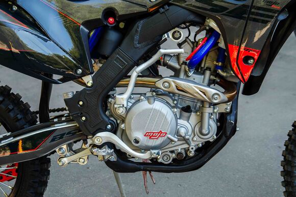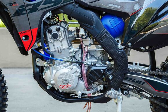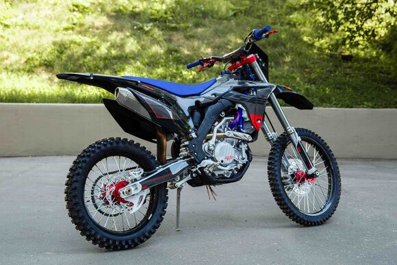 Рама алюминиевая сваренная роботизированным способом, поэтому швы и проварка не вызывает нареканий, геометрия и профиль сварных элементов являются копией рамы Honda crf 250. В базе установлена защита картера.Шасси: Вилка перевернутого типа с регулировкой отбоя, сзади алюминиевый маятник связанный с задним амортизатором через систему линков (pro-link), амортизатор рюкзачного типа длиной 480 мм, с регулировками отбоя, сжатия и пред нагрузкой. Двигатель ZS177MM 250 см3, 4 клапанный, водяного охлаждения, мощностью 27 л.с. производства компании Zongshen с электро и кик стартером.Траверсы, ступицы, звезда, анодированы в красный. Передний и задний диск имеет пластиковую защиту.У нас Вы можете купить этот мотоцикл с бесплатной доставкой по РФ и гарантией до года. Также его можно приобрести в рассрочку или в кредит.