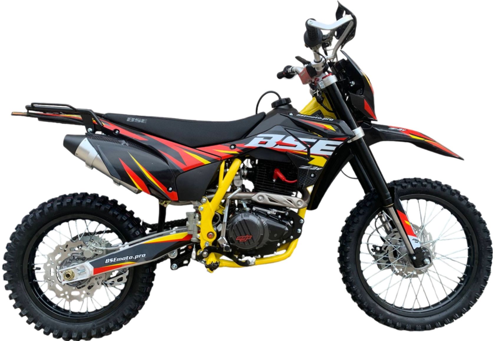 BSE RUSSIA представляет новинку 2024 - модель Z3 V!Бестселлер среднеразмерного сегмента BSE Z3 V обзавелся вариацией двигателя Zonsen ZS172FMM-5 с балансирным валом! Теперь минимум вибраций!Двигатель Z3 V: тяговитый 4-х тактный Zonsen ZS172FMM-5 (PR250) c балансирным валом. Рабочий объём: 250cc, 2-клапанная ГБЦ, воздушное охлаждение, мощность 21 лс. Легко контролируемая подача мощности благодаря карбюратору Nibbi Racing PE30 и отличный отклик дроссельной заслонки на короткоходную ручку газа. Коробка передач – механическая 5-ступенчатая, запуск – электростартером и кикстартером. Мотор очень эластичный, с отличными показателями крутящего момента на низких и средних диапазонах. А легендарная надежность завода моторов ZONSEN, удобство в обслуживании и доступность запчастей в представлении не нуждается!Среднеразмерный эндуро Z3 V готов на любые приключения! Мотоцикл оснащается стальная рамой повышенной жёсткости BOSUER с усилителями и алюминиевым мятником. Подвеска – регулируемая Mojo Standard с большими ходами помогает отрабатывать даже самые жесткие приземления, с лёгкостью "глотая" все неровности. Установлена прогрессия задней подвески. Мощная гидравлическая тормозная система HSK RACING остановит ваш мотоцикл максимально эффективно.Комфорт. Его на BSE Z3 V в избытке: полностью светодиодная фара головного света с 5 модулями и полоской дневного хода, задний стоп сигнал, USB зарядка, электростартер, удобное сиденье, широкий спортивный алюминиевый руль. Благодаря ЖК приборной панели и датчику моточасов вы всегда будете знать о всех главных параметрах мотоцикла. Металлическая зашита рук, задний багажник, буксаторы на усиленных ободах. Z3 V 21/18 в стандарте обут в «зубастые» покрышки Yanxing, спереди: 80/100- 21, сзади: 110/90 -18. Z3 V точно не спасует в условиях серьезного бездорожья.Компактный, легкий, с минимальным и вибрациями и фантастической управляемостью -отличный выбор для райдеров начального и среднего уровня. Чрезвычайно удачный, сбалансированный и комфортный мотоцикл. Современный яркий дизайн пластика. Z3 V доступен в нескольких цветовых решениях и в двух вариантах размерности колес: 21/18 или 19/16. Особое внимание на расцветку Red Twist – это первый BSE с желтой рамой!