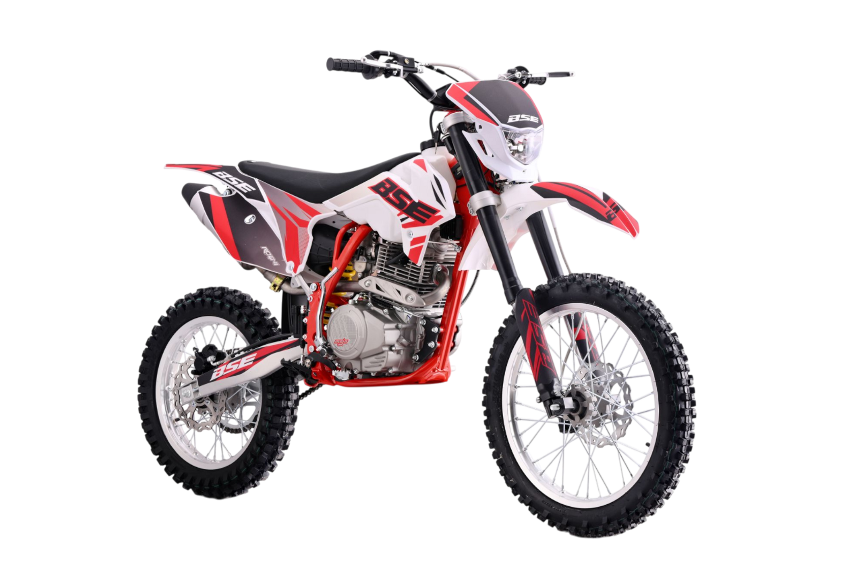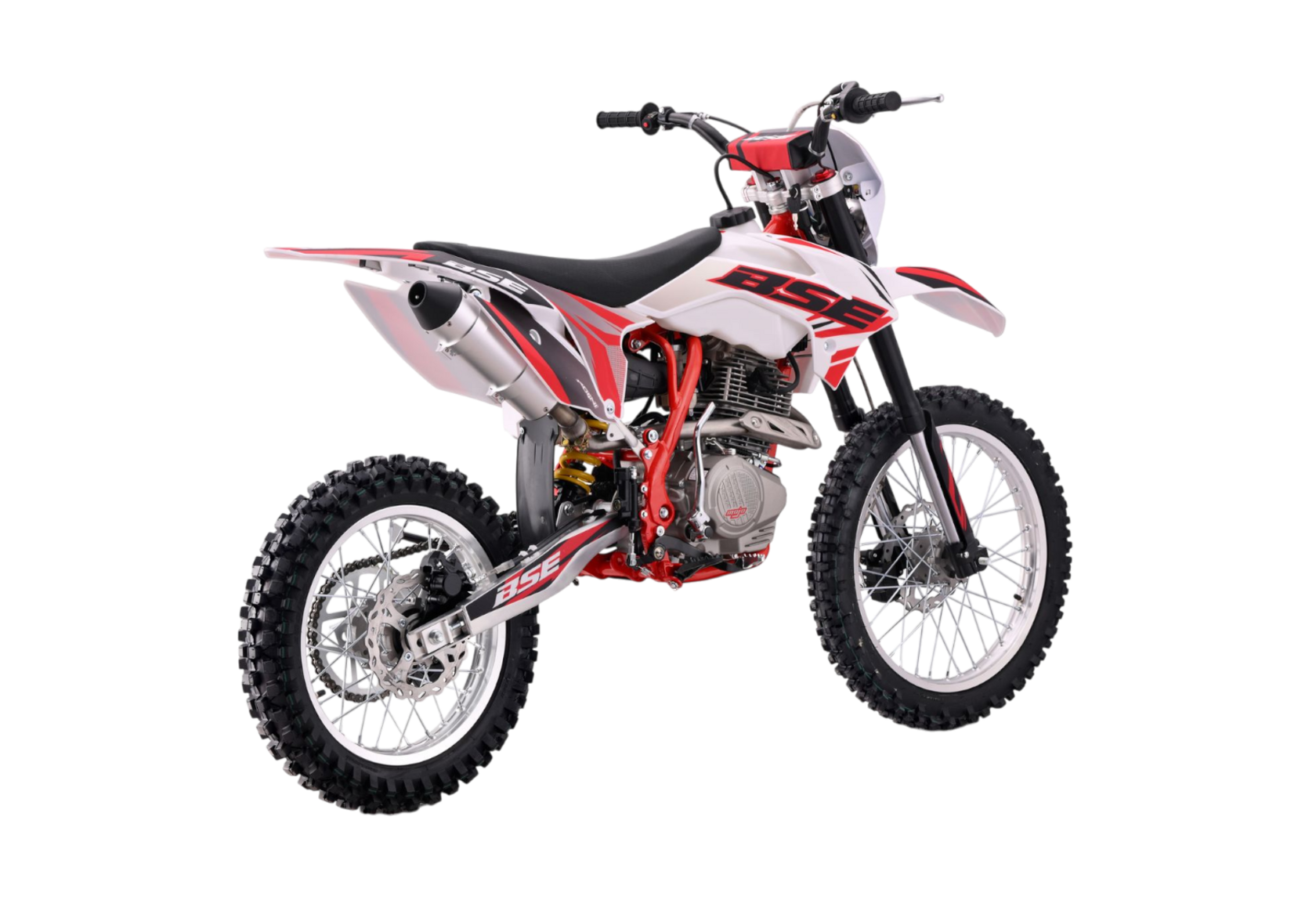 Представляем BSE Z3.00 — настоящий кроссовый мотоцикл из легендарной Z-серии, созданный для тех, кто ищет адреналин, свободу и уверенную управляемость вне асфальта. Яркий красно-белый дизайн, агрессивный силуэт и серьёзная техническая начинка делают эту модель идеальным выбором для трейлов, мотокросса и активного отдыха в условиях бездорожья.