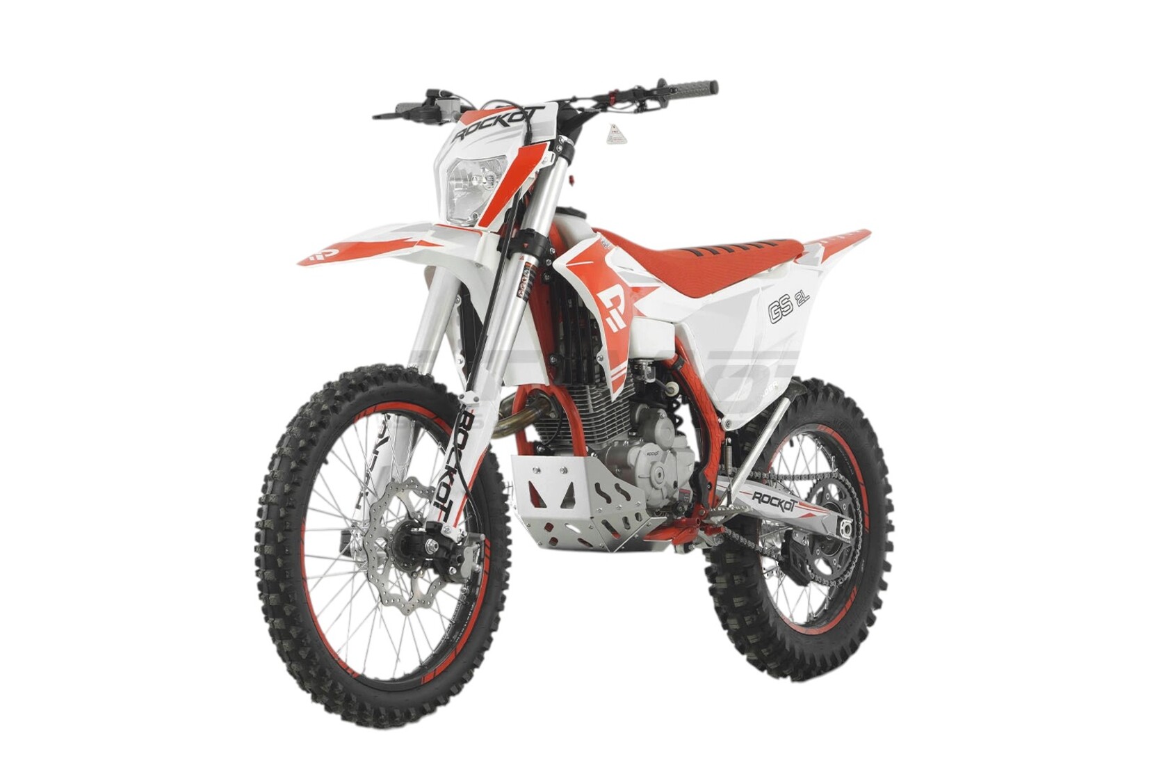 ROCKOT GS 2-L Outlander - полноразмерный эндуро мотоцикл в пластике GASGAS на популярном двигателе 172FMM-5 PR250. Высота по седлу в 920 мм и колесная база 1465 мм обеспечат отличную управляемость и комфортное вождение даже для невысоких райдеров. Подвеска мотоцикла в паре с качественными шинами создают все условия для достижения максимально качественного зацепа с поверхностью трассы.ROCKOT GS 2-L Outlander выполнен в исключительно ярком и запоминающемся дизайне, в расцветке которого преобладают красный, белый и серебристый цвета. Такая расцветка подчеркивает спортивный характер и в то же время визуальную легкость мотоцикла. Облицовочный пластик в стиле GASGAS 21` выделяет мотоциклы серии GS среди других эндуро мотоциклов. Элементы передней и задней подвесок, двигатель, защита двигателя окрашены в серебристый цвет, благодаря чему отлично сочетаются со стильной графикой, нанесенной на пластик байка. Белый топливный бак позволит постоянно контролировать наличие топлива даже во время езды. Рама окрашена в красный цвет и придает мотоциклу более агрессивный, спортивный вид под стать его возможностям. За адреналин и яркие эмоции от поездок отвечает один из самых популярных двигателей - Zonsen (Zongshen) PR250 172FMM-5. Неспроста данный мотор заслужил свое признание среди эндуро сообщества. Это один из самых надежных и проверенных временем двигателей китайского производства. Фактический объем двигателя составляет 249 см³ и двухклапанную систему ГРМ, что в паре с карбюратором PE30 позволяет ему развивать мощность в 21 лошадиную силу. Коробка передач - пятиступенчатая с многодисковым сцеплением в масляной ванне. Крутящий момент в 18 Nm достигается уже при 6500 об/минуту, а его равномерное распределение делает этот мотор идеальным для эндуро. Также для обеспечения наивысшего крутящего момента в диапазоне низких оборотов, ROCKOT GS 2-L Outlander оснащен выхлопной системой с резонатором “PowerBomb”. Балансирный вал значительно снижает вибрации, что делает поездки и тренировки более комфортными.ROCKOT GS 2-L Outlander сконструирован на основе рамы S8, геометрия которой была специально спроектирована для эндуро. Угол наклона вилки сделан таким образом, чтобы придать мотоциклу наилучшую управляемость и маневренность. Особенность рамы заключается в использовании труб восьми- и шестигранного сечения. Применение хром-молибденового сплава стали сделало раму мотоцикла более легкой и невероятно прочной.Рама и двигатель надежно закрыты от ударов толстой алюминиевой защитой, а боковая часть рамы - прочными пластиковыми накладками. Спереди установлена телескопическая вилка перевернутого типа длиной 910 мм. Толщина пера составляет 41 мм, что является оптимальным решением для полноразмерного эндуро мотоцикла, способного выступать в эндуро соревнованиях класса “Бронза”.Задняя подвеска состоит из регулируемого (сжатие/отбой/преднатяг) моноамортизатора, длиной 465 мм, и рычажной системы прогрессии, благодаря которой рабочий ход задней подвески значительно увеличивается.ROCKOT GS 2-L Outlander имеет колеса стандартного для эндуро размера - 21/18 дюймов. С завода мотоцикл поставляется на фирменных колесных дисках KKE, отличающихся своей высокой прочностью. Спереди установлена шина ROCKOT RT-909, являющаяся аналогом Mitas C-19, а сзади ROCKOT RT-754. Шины имеют мягкий компаунд medium soft и обеспечивают отличное сцепление с трассой как на мягком, та
