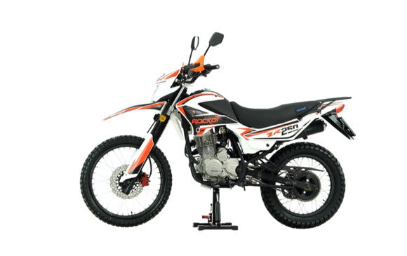 Представляем вашему вниманию новинку сезона 2024 года - бюджетный софт-эндуро мотоцикл ROCKOT ZR250.ZR250 - это полноценный эндуро мотоцикл с электронным ПТС, который был создан для повсеместной езды, будь то асфальтированные дороги общего пользования, грунтовые проселочные дороги и, конечно же, бездорожье. ROCKOT ZR250 выполнен по всем канонам софт-эндуро, а именно: прочный металлический бак, облицовка из мягкого ударопрочного пластика, широкое и комфортное сиденье для водителя и пассажира, а в задней части установлен стальной багажник. Мотоцикл производится в двух вариантах расцветки графики: черно-красной и черно-оранжевой.Дизайн мотоцикла ROCKOT ZR250 напоминает классический эндуро мотоцикл японского производства начала 2000-х годов. Именно эти байки послужили прообразом для создания бюджетного лайт-эндуро мотоцикла. Классическая вилка спереди, безлинковая подвеска сзади и колесная компоновка 21/18 - все это делает мотоцикл стильным, аутентичным, проходимым и доступным. ROCKOT ZR250 оснащен четырехтактным двигателем объемом 223 см³ и мощностью 16 лошадиных сил. Отличительная особенность этого двигателя от других “одноклассников” - это нижний распредвал и привод ГРМ штангами-толкателями. Данная конструкция двигателя является очень простой и надежной.Также, большим преимуществом газораспределительного механизма с приводом на толкателях, считается широкий диапазон крутящего момента во всех диапазонах вращения коленчатого вала.Система питания двигателя - карбюраторная, с высокопроизводительным карбюратором PZ30 с ускорительным насосом, который обеспечивает быстрый отклик на ручку газа, а также стабильную работу даже при холодном запуске. Обогатитель топливной смеси расположен на руле, что делает очень удобным первый запуск.Двигатель оснащен балансирным валом, снижающим уровень вибрации. Мотоцикл построен на прочной стальной раме, окрашенной в черный матовый цвет. Мотоцикл оборудован подножками для перевозки пассажира. Подрамник также выполнен из стали, к которому крепится металлический багажник, позволяющий перевозить грузы и установить центральный кофр. Подвеска ROCKOT ZR250 типична для данного класса мотоциклов - софт-эндуро. Это классическая вилка спереди, длиной 840 мм, и моноамортизатор, длиной 300 мм, сзади. Система рычагов прогрессии отсутствует, что облегчает эксплуатацию и обслуживание подвески мотоцикла. Несмотря на классическую простоту амортизаторов, они позволят комфортно ездить по бездорожью даже с пассажиром. Спереди и сзади установлена дисковая гидравлическая тормозная система. Передний тормозной диск увеличенного диаметра - 270 мм, который работает в паре с двухпоршневым суппортом. Задняя тормозная система имеет диск диаметром 240 мм и однопоршневой суппорт. Гидролиния тормозной системы состоит из армированных шлангов, которые обеспечивают наилучший отклик тормозной системы и повышенную надёжность всей системы. ROCKOT ZR250 с завода комплектуется универсальными туристическим шинами, позволяющими передвигаться по любому типу поверхностей. Передняя шина имеет размерность 90/90-21, а задняя - 120/90-18. Шины установлены на прочные стальные диски, окрашенные в черный матовый цвет.Привод на заднее колесо осуществляется цепью с шагом 520. Ведомая приводная звезда из стали насчитывает 45 зубьев. Кому подойдет эндуро мотоцикл ROCKOT ZR250Колесна