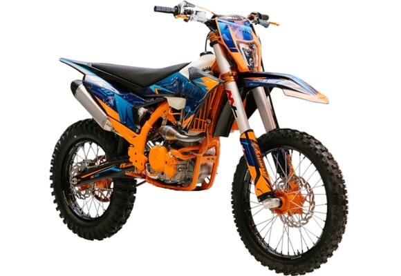 Мотоцикл FXmoto K10 (NB300) — это стильный, мощный и надежный внедорожный мотоцикл, разработанный для любителей экстремальной езды и покорения сложных трасс. Он сочетает в себе современный дизайн, высокую производительность и прочную конструкцию, что делает его идеальным выбором для тех, кто ценит адреналин и свободу передвижения по бездорожью. FXmoto K10 подходит как для активного отдыха, так и для участия в мотокроссах.Основные характеристики:Двигатель: 4-тактный одноцилиндровый двигатель объемом 300 куб. см с воздушным охлаждением. Этот мотор обеспечивает высокую мощность и крутящий момент, что позволяет легко преодолевать сложные участки дороги, подъемы и бездорожье.Трансмиссия: 5-ступенчатая механическая коробка передач, которая обеспечивает плавное переключение и полный контроль над мотоциклом в любых условиях.Подвеска: Длинноходная передняя вилка и задний моноамортизатор обеспечивают комфорт и устойчивость на неровных поверхностях, эффективно поглощая удары и вибрации.Тормоза: Дисковые тормоза на обоих колесах гарантируют надежное и эффективное торможение даже на высоких скоростях или в сложных условиях.Колеса: Прочные спицованные колеса с внедорожными покрышками обеспечивают отличное сцепление с грунтом, песком, грязью и другими типами поверхностей.Дизайн: Агрессивный и современный внешний вид с защитными элементами, такими как дуги, пластиковые крылья и прочная рама, подчеркивает спортивный характер мотоцикла.Вес: Легкая конструкция (около 120-130 кг) делает мотоцикл маневренным и простым в управлении.Идеален для езды по бездорожью, лесам, горам и другим сложным ландшафтам.Простота в обслуживании благодаря надежной конструкции и доступным запчастям.Высокая мощность двигателя позволяет легко преодолевать сложные участки дороги.Универсальность: подходит как для активного отдыха, так и для тренировок или соревнований