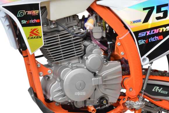 Kews K 24 оснащен мощным мотором 174 FMN NB объемом 300 куб. см с воздушным охлаждением. Это обеспечивает отличную производительность и надежность, а также позволяет мотоциклу уверенно справляться с разными типами трасс и сложными условиями.Мотоцикл оборудован 6-ступенчатой механической коробкой передач, что обеспечивает гибкость в выборе режима езды и позволяет оптимально использовать мощность двигателя в различных условиях.Kews K 24 имеет карбюратор NIBBI PWK 32, который обеспечивает эффективное топливопитание и оптимальную работу двигателя даже в сложных условиях. Это способствует улучшению динамики разгона и общей надежности работы мотора.Мотоцикл оснащен усиленными спицами и алюминиевыми ободами от компании UNISON, что улучшает прочность колес и устойчивость к ударам при езде по сложным маршрутам. Подвеска Kews K 24 имеет все возможные регулировки, что в свою очередь, позволяет настроить мотоцикл под разные задачи и условия езды , и чувствовать себя уверенно на различных трассах.