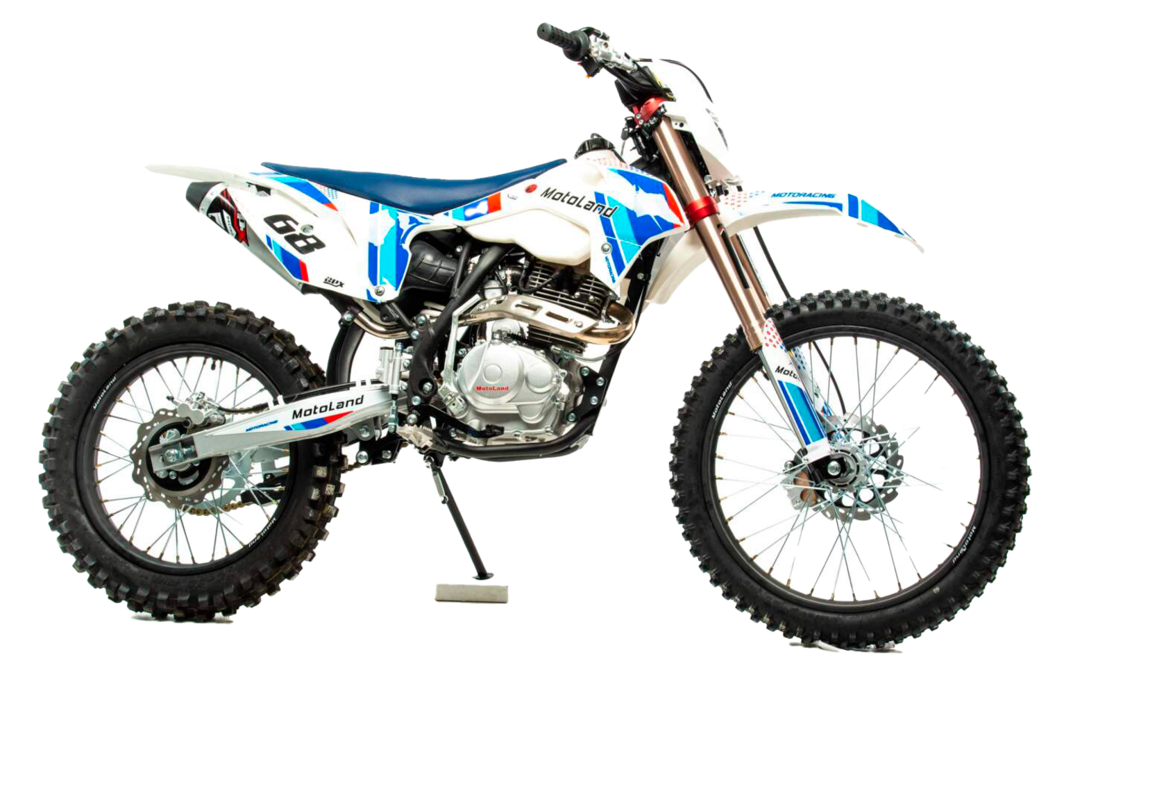 Команда PITBIKEMARKET представляет вашему вниманию Мотоцикл Motoland CRF250 2021 года. Этот эндурик предназначен для активного передвижения по бездорожью, по полям, лесам, горам, труднопроходимой местности. База:За основу этого мотоцикла взят один из самых популярных эндуро BSE J1 250 LE. C него на Motoland перекочевала рама, пластик и основные навесные элементы. Рама закрытого типа выполнена из стали, также как и пластик срисована с новой версии австрийского KTM. Высота по седлу составляет 88 см. На нем комфортно расположится райдер ростом от 170 см, весом от 60 кг. Небольшая высота по седлу позволяет с успехом использовать этот мотоцикл людям без опыта езды, отличная "учебная парта". Максимальная нагрузка 130 кг. В актив можно отнести и относительно небольшой вес мотоцикла в 110 кг.Двигатель:Сердцем этого эндурика является Двигатель 165FMM. По праву можно сказать что моторы с этой маркировкой самые распространенные на мототехнике их поднебесной. Они сочетают в себе высокую надежность, мощность (около 16 лс) и обилие запчастей в любых уголках РФ. На мотор установлен карбюратор Keihin PE28. Этого карбюратора вполне достаточно для активной езды, есть регулировка холостого хода и качества смеси. Воздушный фильтр спрятан в пластиковый короб (фильтрбокс). Он позволяет преодолевать броды и надежно защищает мотор от попадания грязи и воды.Подвеска:Для снижения себестоимости мотоцикла на нем применяется стандартная передняя вилка. Хоть она и без регулировок, но с очень большими ходами. Ее стихия - езда по лесу, преодоление упавших деревьев, камней, ям, мелких неровностей. Очень комфортная и предсказуемая. Задний амортизатор с регулировкой, соединен с маятником через линки прогрессии. Колеса:На мотоцикле установлены усиленные алюминиевые колеса. Резина CST - мягкая резина с хорошим зацепом. Буксаторы не установлены в базовой комплектации, но их всегда можно дозаказатьТормоза:Спереди и сзади двухпоршневые гидравлические тормоза с качественными медными колодками. Педаль заднего тормоза удобно проходит над штангой крепления подножек. Имеет регулировку по углу наклона.Навесное:Из приятных бонусов особенно хотелось бы отметить толстостенный алюминиевый руль переменного сечения, мягкие грипсы, замок зажигания, фара и щиток в комплекте, очень удобный кикстартер. Вам больше не нужно переживать из-за севшего аккумулятора в дали от дома. Мот удобно заводится ногой. Также можно заводить с помощью электростартера.Ну и самое приятное - это цена этого аппарата. Он доступен абсолютно всем, как начинающим райдерам, так и владельцам дорогих японцев, которых жалко насиловать лесных гряземесах. Motoland CRF 250 - отличный вариант, если вам уже надоел ваш питбайк! Также его называют убийцей 150-190-х питбайков, т.к. за ту же цену можно приобрести полноразмерный эндуро!Питбайк в наличии в наших магазинах. Бесплатная доставка по РФ*. Рассрочка.