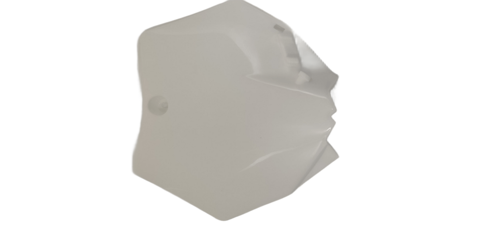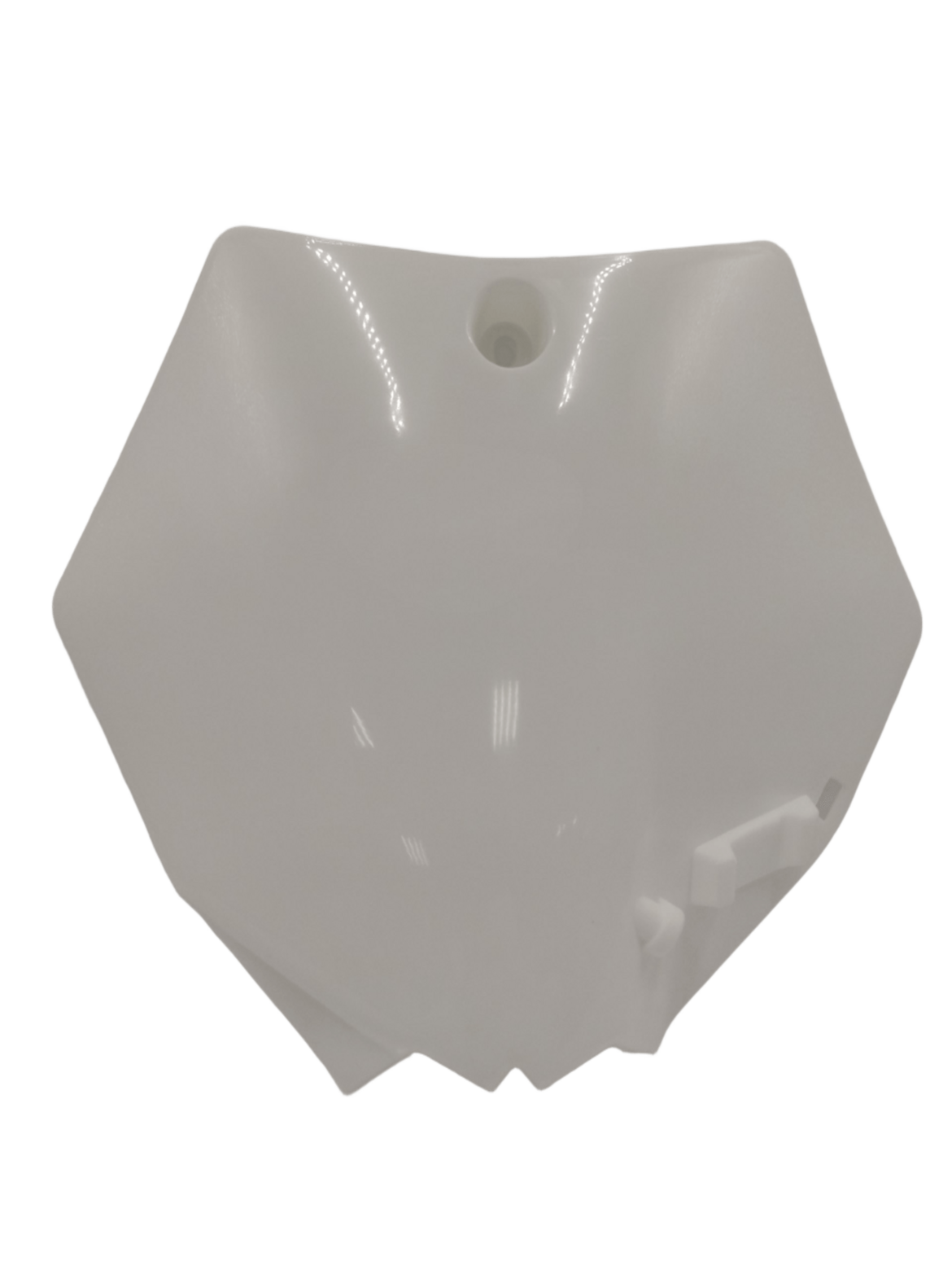Номерной щиток белого цвета типа KTM SX85 2016. Совместим с детскими и подростковыми мотоциклами различных брендов. Изготовлен из ударопрочного пластика, обеспечивает защиту и спортивный внешний вид.