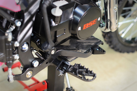Питбайк BSE PH125 на колесах 17/14 дюймов – один из самых популярных, надежных и продаваемых питбайков 125 куб см среди китайских производителей! Этот классический питбайк объёмом 125 см3 обладает рядом модификаций и полезных усовершенствований, которые дополняют его функционал и отличают от конкурентов. PH125 оснащен колесами классическим для питбайка размером колес 17/14. Основа PH125 - рама из хромомолибденовой стали повышенной жесткости с литыми усилителями - фирменный знак качества завода BOSUER! Cиловая установка питбайка – надежный, тяговитый и мощный 4-тактный двигатель Zonghshen 125 куб см с воздушным охлаждением и мощностью 10 лс. Питает мотор карбюратор Jingke PZ 26. Питбайк оснащен 4-ступенчатой механической трансмиссией. Запуск мотора осуществляется при помощи электростартера или кик-стартера. Подвески с большими ходами: передняя - телескопическая вилка перевёрнуто типа, задняя- моноамортизатор. "Злая" резина, Мощная тормозная система HSK Racing, японские колесные подшипники NTN, усиленная цепь 428 Gold, защита мотора - питбайк полностью укомплектован всем необходимым для покатушек и гонок.