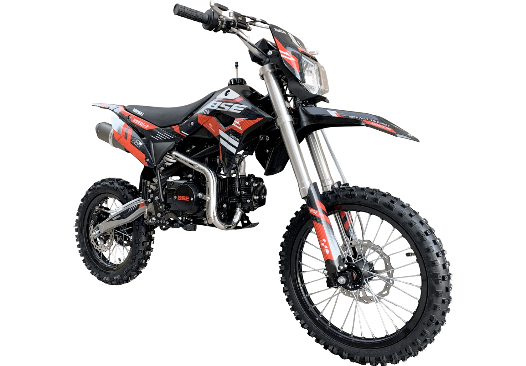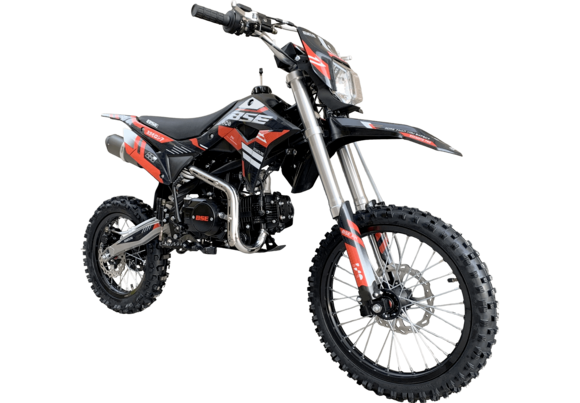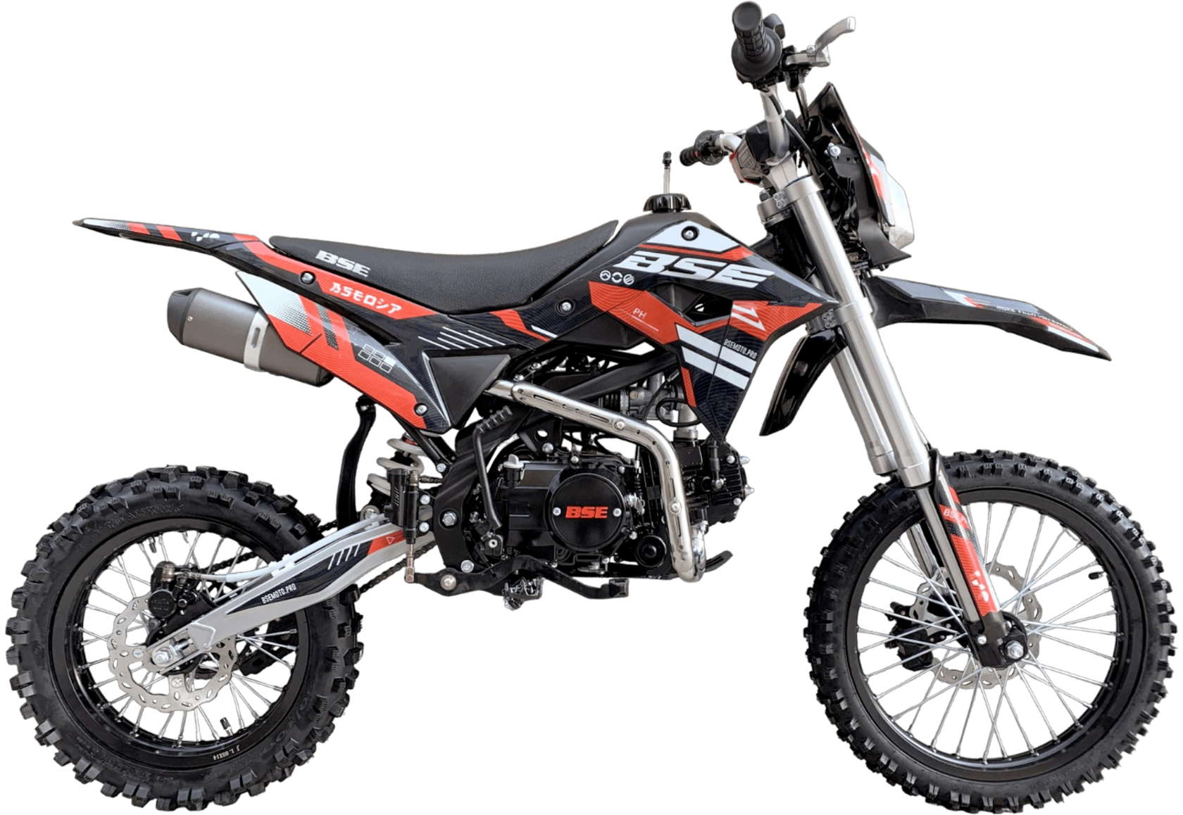 Питбайк BSE PH125 на колесах 17/14 дюймов – один из самых популярных, надежных и продаваемых питбайков 125 куб см среди китайских производителей! Этот классический питбайк объёмом 125 см3 обладает рядом модификаций и полезных усовершенствований, которые дополняют его функционал и отличают от конкурентов. PH125 оснащен колесами классическим для питбайка размером колес 17/14. Основа PH125 - рама из хромомолибденовой стали повышенной жесткости с литыми усилителями - фирменный знак качества завода BOSUER! Cиловая установка питбайка – надежный, тяговитый и мощный 4-тактный двигатель Zonghshen 125 куб см с воздушным охлаждением и мощностью 10 лс. Питает мотор карбюратор Jingke PZ 26. Питбайк оснащен 4-ступенчатой механической трансмиссией. Запуск мотора осуществляется при помощи электростартера или кик-стартера. Подвески с большими ходами: передняя - телескопическая вилка перевёрнуто типа, задняя- моноамортизатор. "Злая" резина, Мощная тормозная система HSK Racing, японские колесные подшипники NTN, усиленная цепь 428 Gold, защита мотора - питбайк полностью укомплектован всем необходимым для покатушек и гонок.