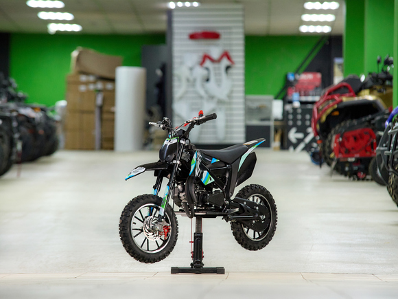 1Питбайк детский KAYO DBR SX50-A отличается простотой управления, чтобы юному райдеру, впервые севшему в седло питбайка, быстрее освоить навыки вождения и получать максимум удовольствия от езды.• Оснащён 2-х тактным 49-ти кубовым лёгким в обращении двигателем с принудительным воздушным охлаждением, который может выдавать максимальную мощность чуть более 2 лошадиных сил;
