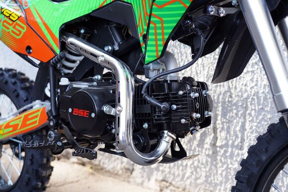 Заводной, маневренный и надежный - вот каким можно охарактеризовать питбайк BSE EX125 17/14. Этот байк представляет собой настоящего монстра в мире мотоциклов, объединяющий в себе мощь и элегантность. Дизайн, который завораживает, скрывает в себе передовые технологии и высокую производительность.Начнем с сердца этого зверя - двигателя. BSE оснащен четырехтактным двигателем Zonsgshen ZS154FMI-2, который гарантирует высокую мощность в 10 л.с. при 7500 об/мин. Этот двигатель имеет максимальную производительность даже в самых экстремальных условиях, а его воздушное охлаждение предотвращает перегрев в самые жаркие моменты.Трансмиссия мотоцикла представлена механической коробкой передач с четырьмя скоростями. Система привода заднего колеса через цепь обеспечивает надежность и плавность переключения передач, делая управление мотоциклом максимально комфортным.Не менее важным является топливный компонент. Система впрыска топлива NIBBI PE19 гарантирует экономичный расход топлива, при этом обеспечивая высокую производительность двигателя. Объем топливного бака в 3.5 литра позволяет долго наслаждаться поездками без необходимости частых заправок.Когда речь заходит о комфорте и управлении, БСЕ становится настоящим лидером. Высокая посадка на высоте 840 мм и регулируемая высота руля делают этот мотоцикл идеальным для различных типов гонок и трасс. А благодаря телескопической вилке передней подвески и моноамортизатору с регулировкой жесткости задней подвески, каждая поездка становится максимально комфортной и плавной.