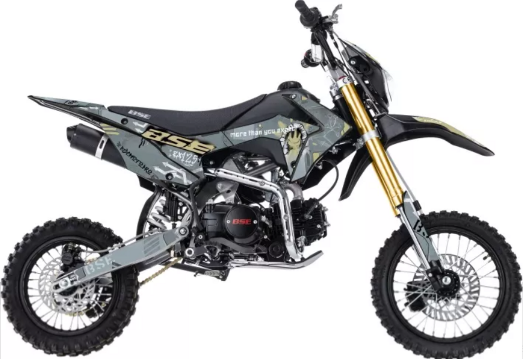 BSE EX 125e – это питбайк, созданный компанией BSE, предоставляющий отличные характеристики для любителей активного мотоциклетного опыта. С массой всего 75 кг и мощностью двигателя 10 л. с., этот бензиновый 1-цилиндровый 4-х тактный мотоцикл с легкостью подчеркивает свою маневренность и эффективность.Модель оснащена двигателем Zonsgshen ZS154FMI-2 объемом 125 см3, работающим по принципу 4-х тактного цикла, что обеспечивает плавное и экономичное движение. Система охлаждения воздушная, что способствует эффективному теплообмену в самых разнообразных условиях эксплуатации.BSE EX 125e обладает уникальной комбинацией передних и задних шин – 17" и 14" соответственно, что обеспечивает отличное сцепление с дорогой и устойчивость на разнообразных поверхностях. Система запуска включает кикстартер и электростартер, обеспечивая удобство использования в различных ситуациях.Телескопическая передняя подвеска и задний моноамортизатор гарантируют плавное и комфортное вождение на неровных дорогах. Дисковые тормоза спереди и сзади обеспечивают высокую степень безопасности и эффективный контроль при торможении.С трансмиссией типа механическая и системой подачи топлива через карбюратор, питбайк BSE EX 125e предоставляет надежность и простоту в управлении. Рама из стали обеспечивает прочность и долгий срок службы мотоцикла.Фары наличие питбайка делают его подходящим для использования в различных условиях освещения. Объем топливного бака составляет 3.5 литра, что позволяет ему преодолевать длинные расстояния на одном баке.Размеры в упаковке (142 х 43 х 64 см) и высота седла (860 мм) делают его компактным и удобным для хранения. Марка топлива – АИ-92, что является распространенным и доступным вариантом.