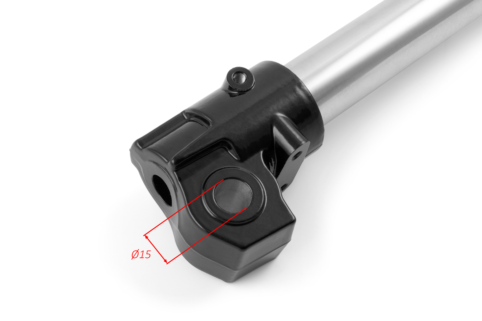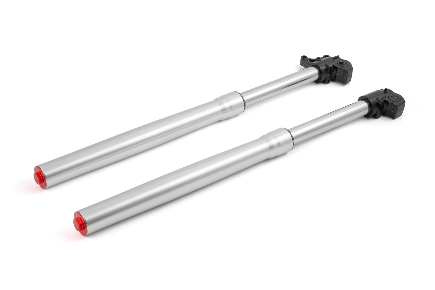 Передняя вилка для питбайка с длинными перьями 725 мм. Предназначена для установки на питбайки с жёсткой эксплуатацией, обеспечивает отличную управляемость и комфорт при езде по бездорожью. Посадочные размеры соответствуют большинству современных моделей, вилка рассчитана на установку двухпоршневого суппорта и передней оси диаметром 15 мм.