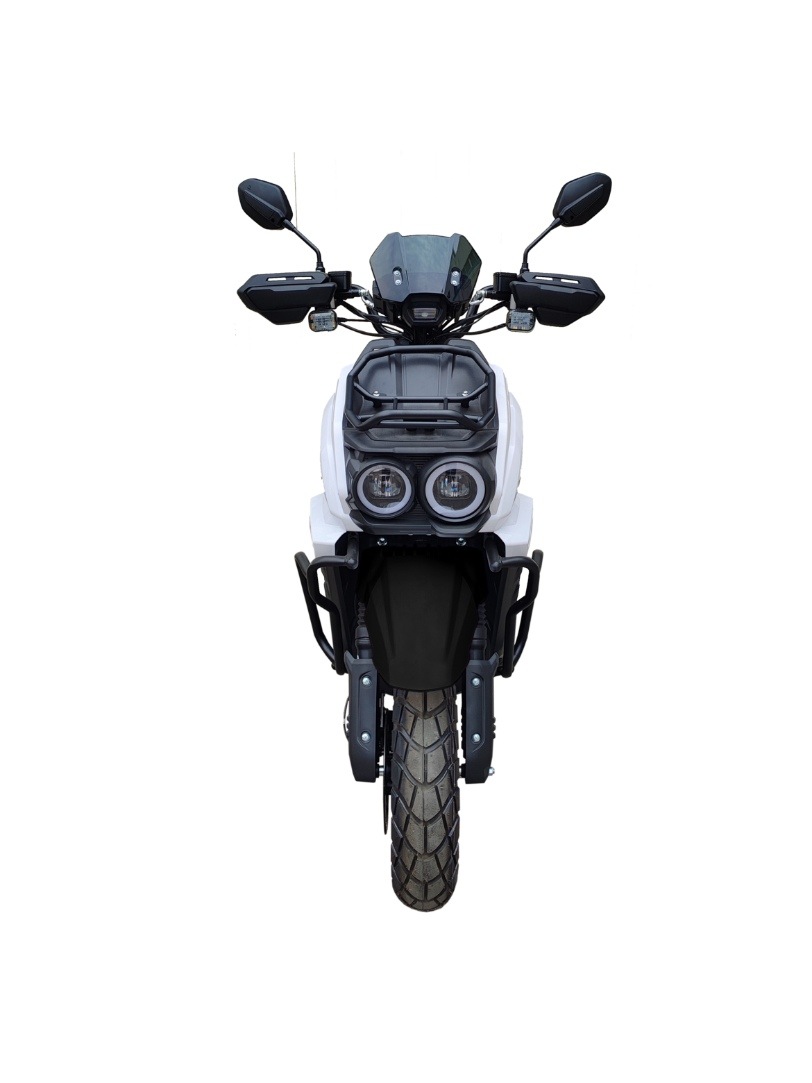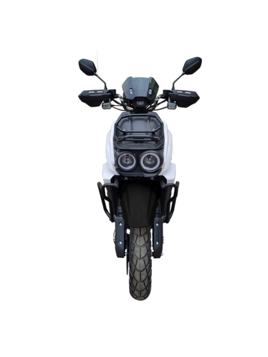 • Врожденная готовность к приключениям: Защитные дуги, внедорожный протектор шин, высокий клиренс (160 мм) и светодиодная оптика — вы изначально получаете скутер, готовый к асфальту, грунтовке и легкому бездорожью.