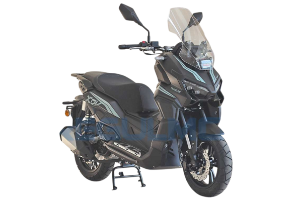 Максискутер Regulmoto XDV TRAVELER - ваш идеальный спутник по дорогам. Этот полноценный двухместный максискутер с двигателем объемом 175сс представляет надежность и высокую проходимость. Ведь его двигатель известен своей неприхотливостью и способностью проехать более 50000 км без каких-либо поломок.Амортизаторы этого максискутера не оставят вас равнодушными. Перевернутые передние амортизаторы с ходом 90мм, специально адаптированные для Российских дорог, гарантируют комфортную поездку. Два задних амортизатора Nitrogen с ходом 65мм дополняют картину максимальной плавности на дороге.Неприступный стиль этого максискутера подчеркивают алюминиевые диски и стильные детали. Дисковые передние и задние тормоза с системой Сombi Break обеспечивают максимальную безопасность и эффективность торможения.Технологически продвинутый большой TFT дисплей Regulmoto XDV TRAVELER обеспечивает отличную видимость даже в самые яркие дни и ночи. Под сиденьем этого максискутера находится просторное место для шлема, так что вы сможете всегда иметь его под рукой. Алюминиевый багажник под кофр позволит вам везти все необходимые вещи с собой.Комфорт - это одна из главных особенностей Regulmoto XDV TRAVELER. Регулируемое в трех положениях высокое лобовое стекло обеспечивает защиту от ветра и осадков, позволяя вам наслаждаться уютной поездкой. Бесключевой доступ, большие зеркала и LED фары делают максискутер еще более удобным и безопасным.Regulmoto XDV TRAVELER - это не просто максискутер, это ваш надежный спутник в путешествиях. С его помощью вы сможете исследовать новые места, наслаждаться скоростью и свободой. LED противотуманные фары, а также LED указатели поворотов и стоп-сигналы обеспечат вас безопасностью и видимостью на дороге.Купите Regulmoto XDV TRAVELER, и вам откроется новое путешествие по дорогам с комфортом, стилем и технологическим совершенством. Сделайте свой выбор и покоряйте дороги с Regulmoto