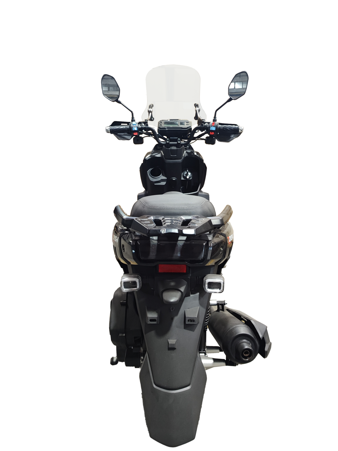 • Врожденная готовность к приключениям: Защитные дуги, внедорожный протектор шин, высокий клиренс (160 мм) и светодиодная оптика — вы изначально получаете скутер, готовый к асфальту, грунтовке и легкому бездорожью.