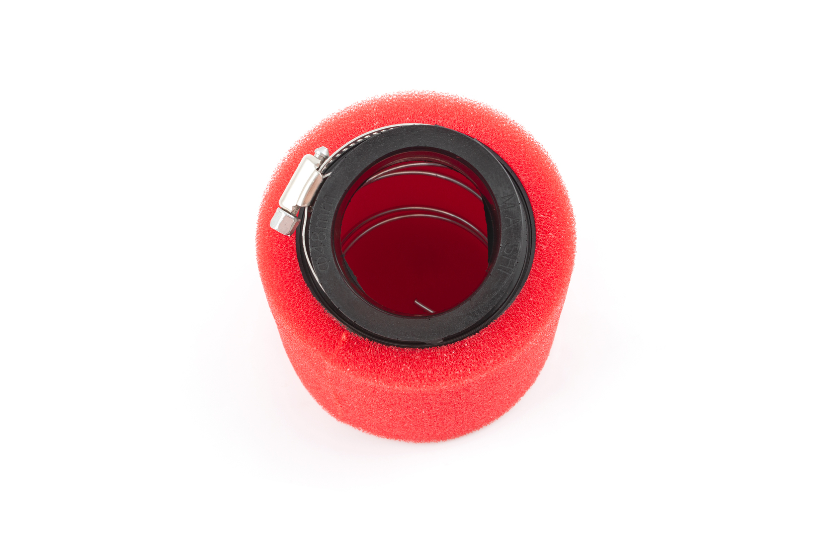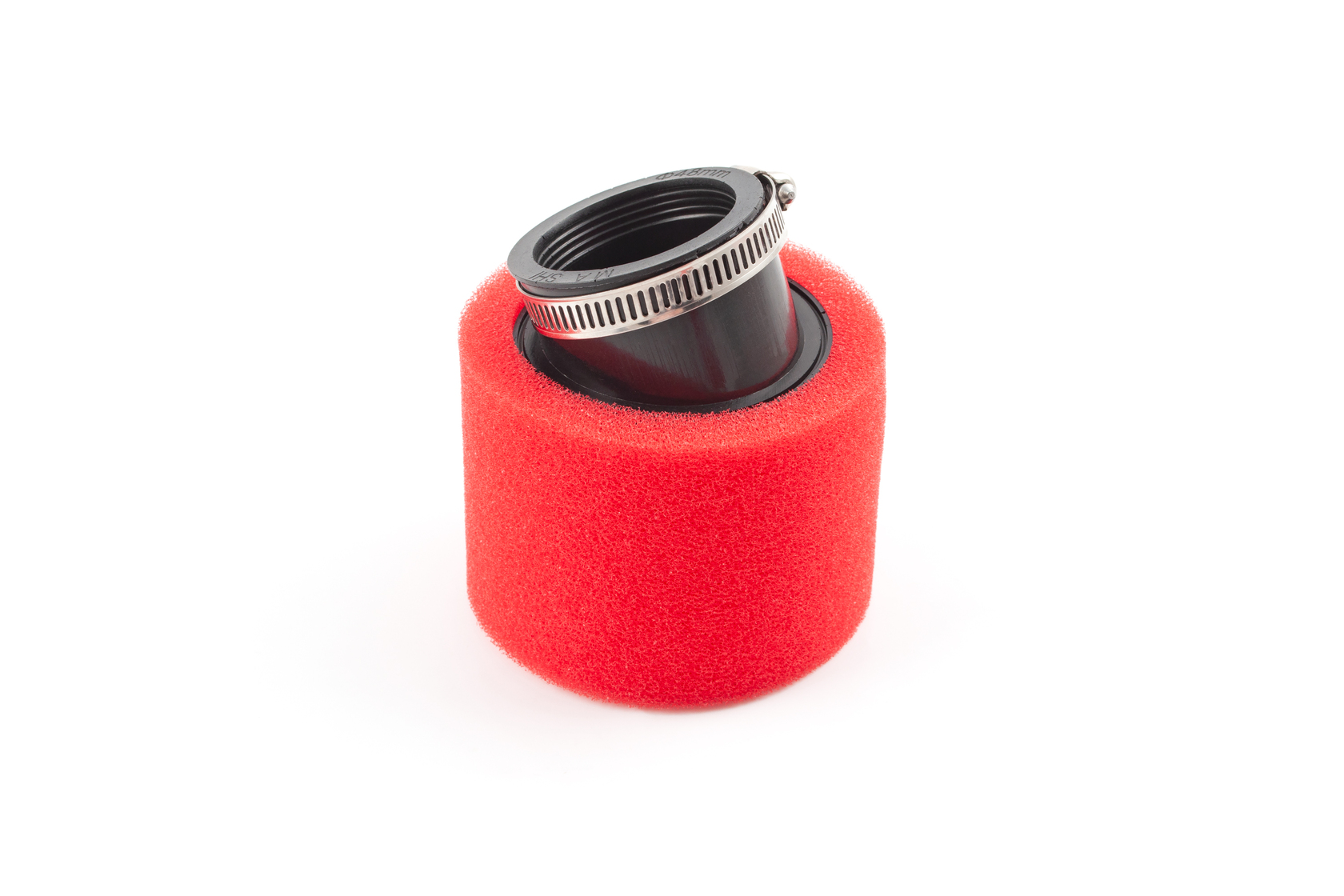 Угловой воздушный фильтр (нулевик) с посадочным диаметром 48 мм для мотоциклов, питбайков и скутеров. Выполнен из крупнопористого поролона ярко-красного цвета, обеспечивает высокую степень фильтрации воздуха и отличный поток для улучшения отклика двигателя. Компактная угловая конструкция облегчает установку в ограниченном пространстве. В комплект входит металлический хомут для надежной фиксации на карбюраторе.