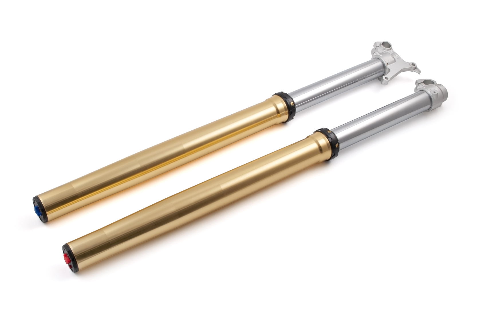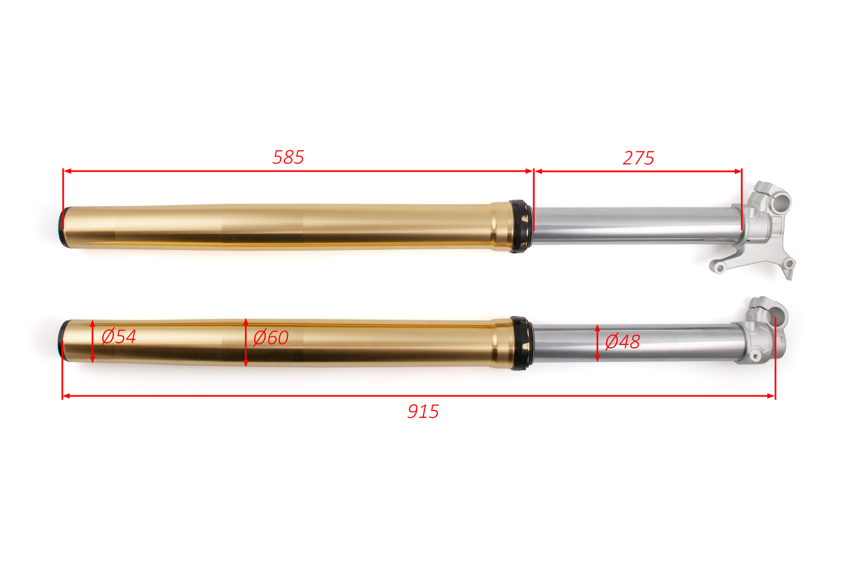 Перья вилки для полноразмерных эндуро мотоциклов с шасси К8. Длина 910 мм, диаметр пера 48 мм. Однокартриджная конструкция с регулировками сжатия и отбоя. Имеют клапан для сброса воздуха и крепление под суппорт типа KTM. Выполнены в бронзовом цвете.